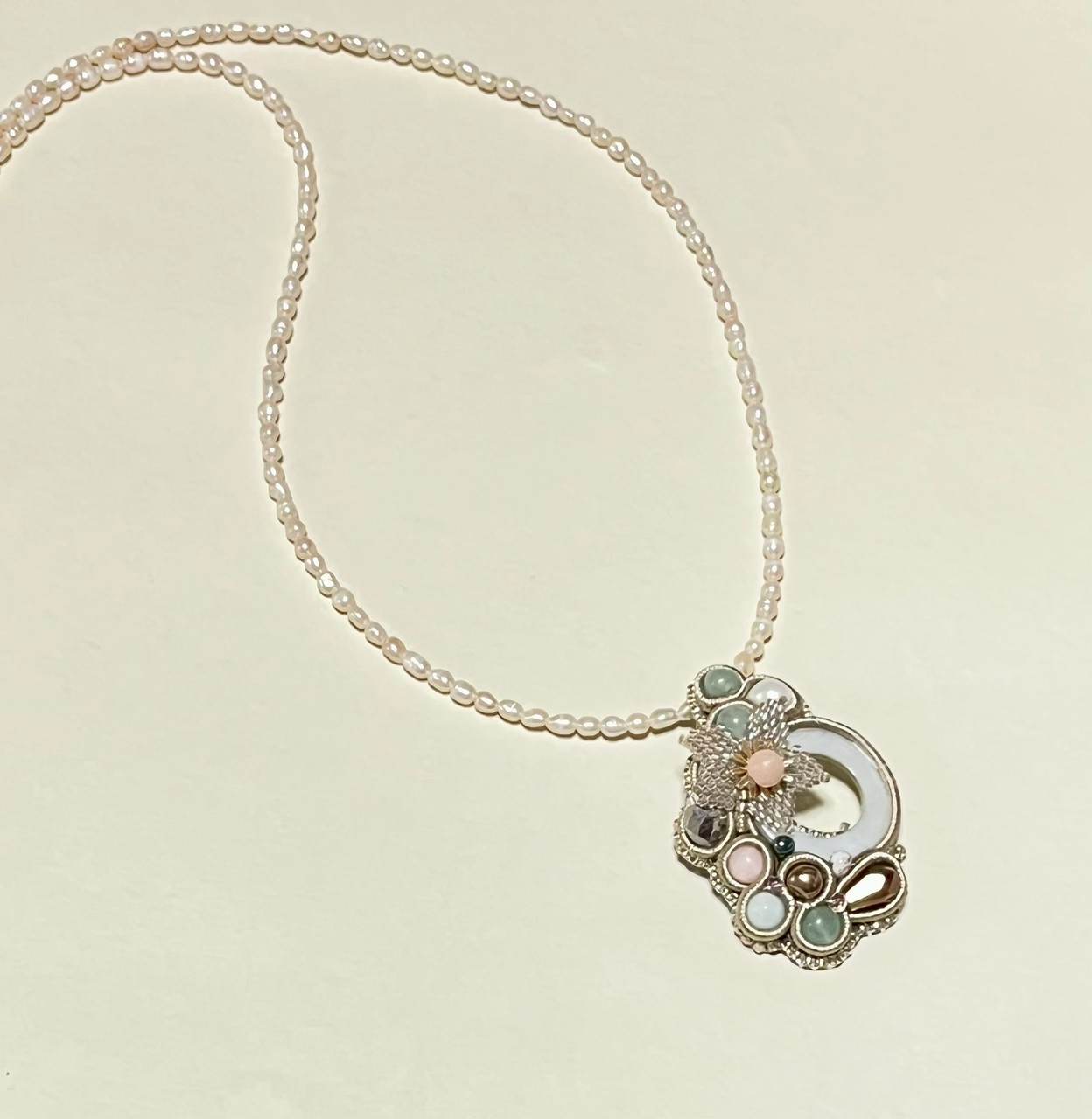 グリーンアベンチュリンとシエルのリングを合わせペンダント
