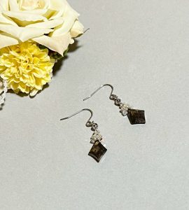 今月はひし形のパイライトをクリスタルガラスで編み込みピアスを作りました🎶